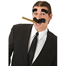 Paint on a mustache with a black greasepaint stick, add a pair of horn rimmed glasses and a cigar….and there you have it. Groucho! A short blond curly wig and a bicycle horn (a white or tan duster if you can find it). And there you have Harpo.